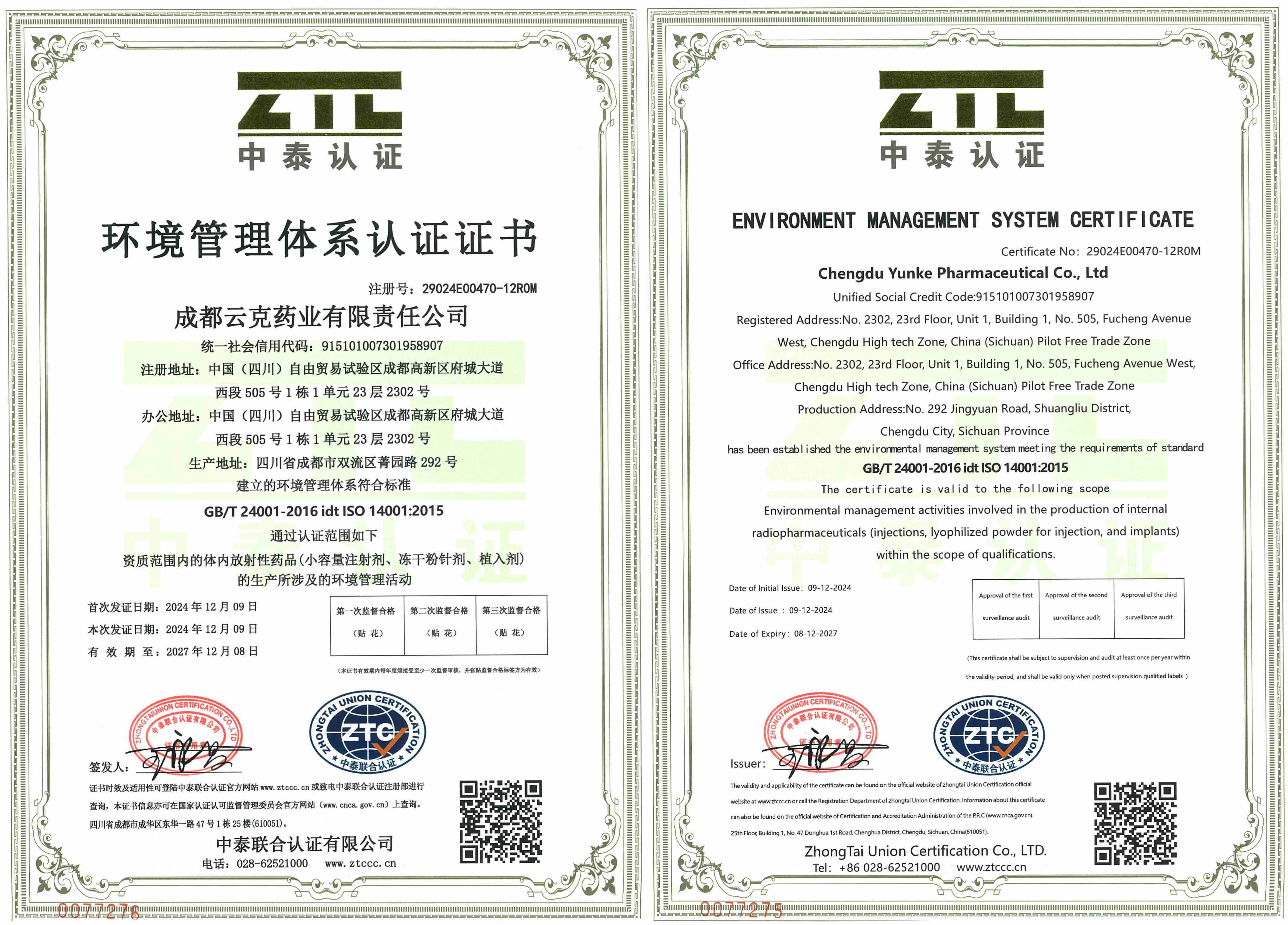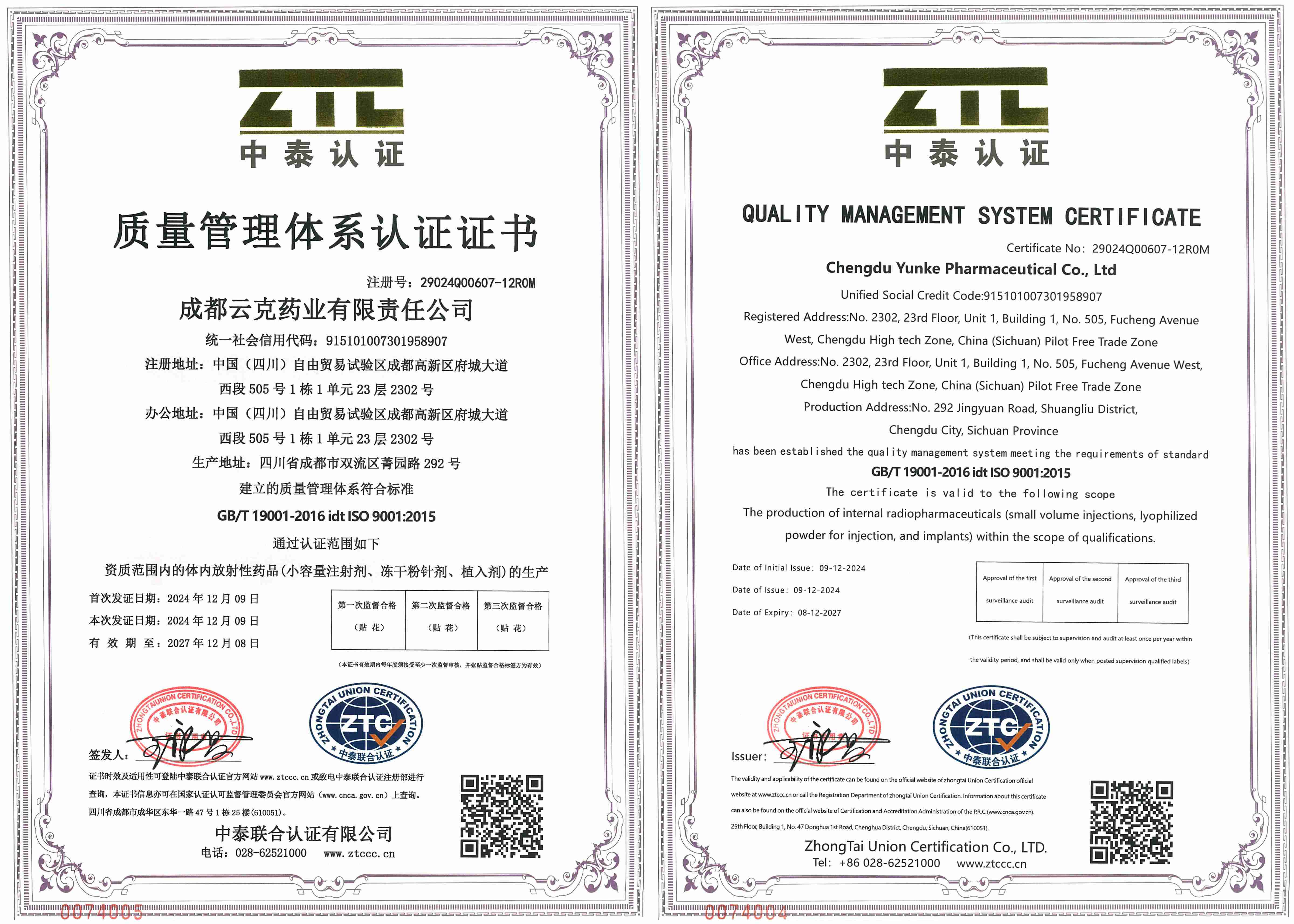 成都云克药业有限责任公司前身为中国核动力研究设计院成都同位素应用研究所(成立于1992年),于2001年整体改制成立。公司专业从事医用放射性核素药物的生产及销售,以及核医疗专科医院经营,在国内核素治疗新药供应和研发上处于领先地位。